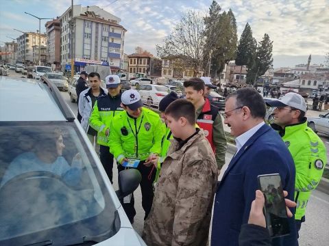 Tại quận Boyabat, Sinop, học sinh giáo dục đặc biệt đã tham gia các buổi kiểm tra của cảnh sát giao thông.