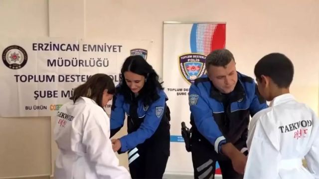 Trong khuôn khổ dự án ÇOGEP do Sở Cảnh sát Erzincan điều phối, đồng phục taekwondo đã được trao tặng cho 20 học sinh tham gia khóa học taekwondo tại Trường Tiểu học Göktürk. Dự án này nhằm mục đích giúp các em giao lưu và tự tin hơn thông qua thể thao.