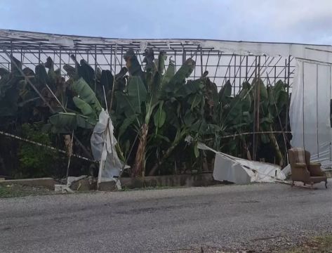 Lốc xoáy làm hư hại nhà cửa và nhà kính, quật đổ cây cối