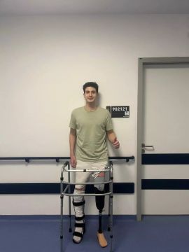 Một chàng trai trẻ bị mất chân đã bắt đầu đi lại được nhờ chân giả và vật lý trị liệu